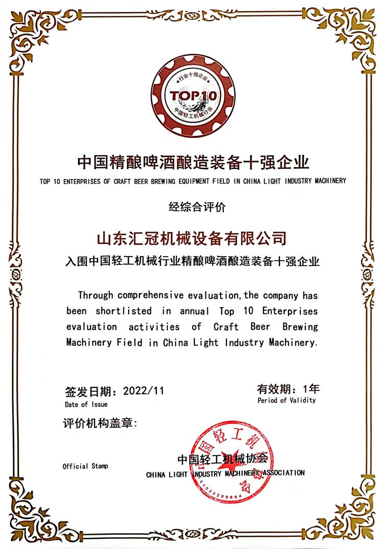 近日,我國輕工業聯合會發布了2022年度中輕工業百強企業,另外一起發布的還有我國科技百強榜、我國輕工業食品50強企業等,都是來自各個輕工業范疇的優秀品牌。其間,山東赫爾曼上榜2022年度“中國輕工機械行業精釀啤酒釀造裝備十強企業”,在此,我司已經連續兩年上榜精釀啤酒釀造裝備十強企業。