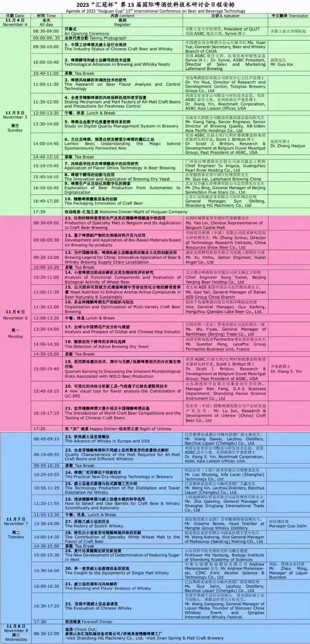 此屆技術會議的主要報告人都是世界著名的啤酒大師、威士忌專家、業界權威與營銷高手,他們不但具有廣泛的專業理論知識,而且擁有豐富的實踐經驗,在他們各自的專業領域都卓有成就、業績非凡!
